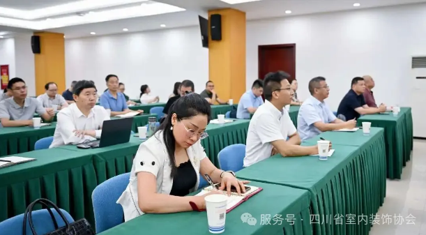 参会社会组织负责人认真聆听讲座/四川省室内装饰协会副会长兼副秘书长杨树倩参加会议